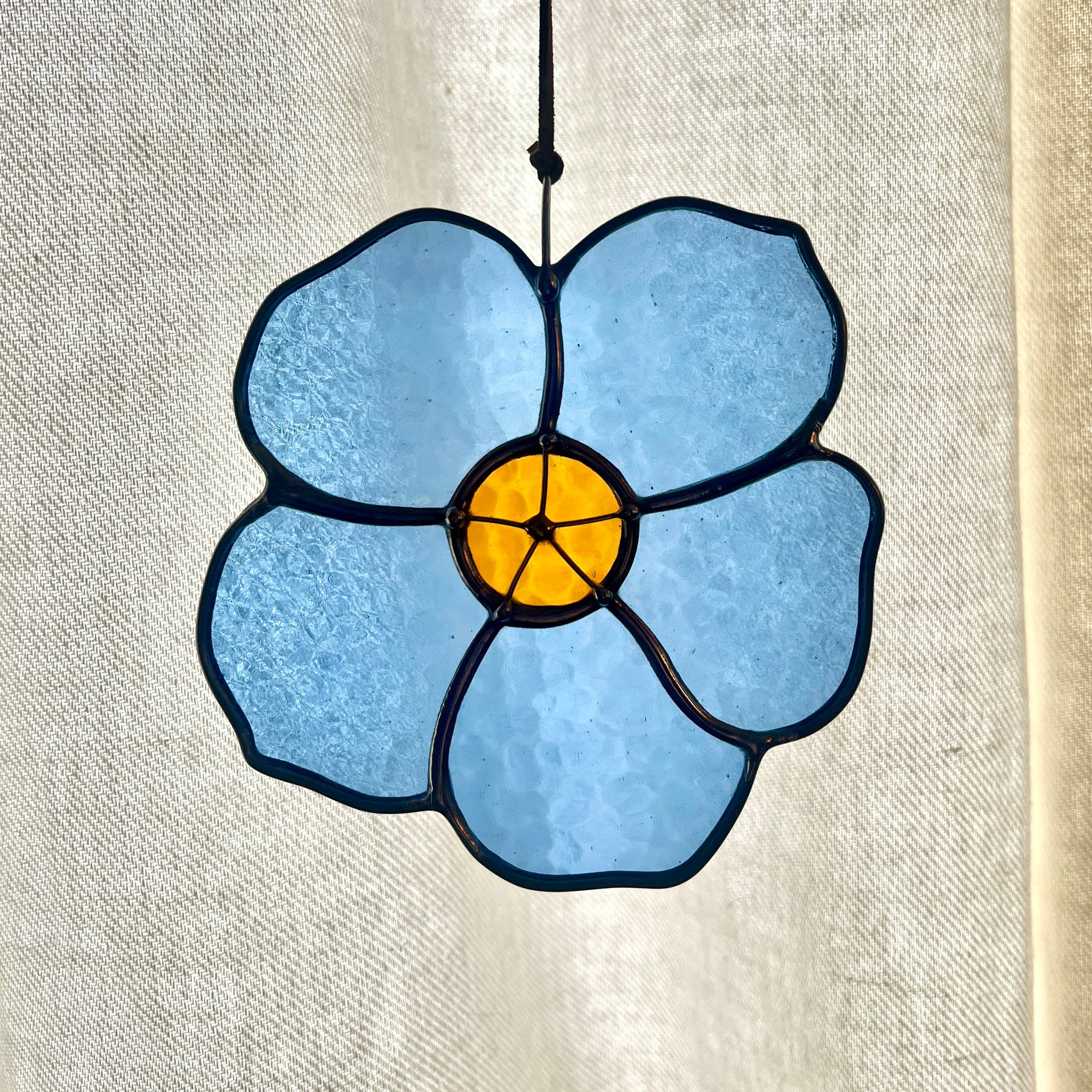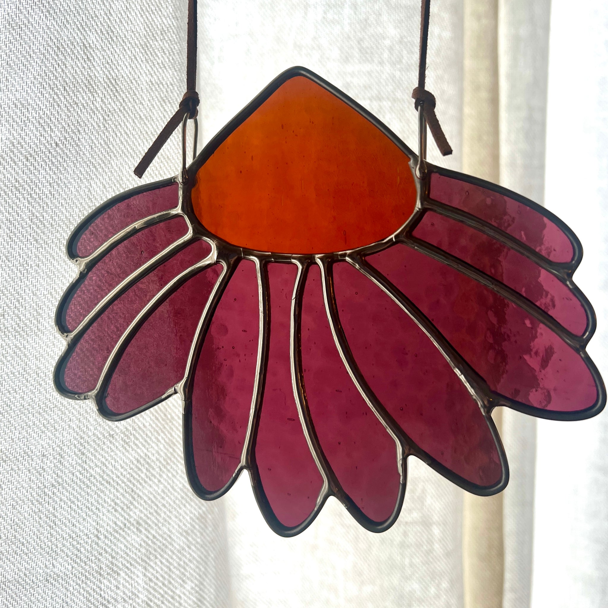 Best to hang on a nail or hook in a secure place - I do not recommend suction cup hooks - check my FAQ page for care and hanging.